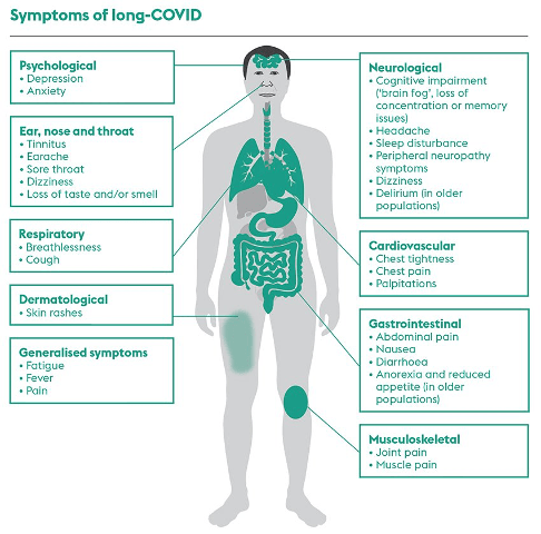Scientists have identified a similar condition in those that have contracted COVID-19. COVID-19 starts with a respiratory infection that produces common flu-like symptoms. However, it can have extensive systemic effects on the body as the virus attacks cells and disrupts bodily functions. This means that it may eventually affect the heart, blood vessels, brain, liver, eyes, and kidneys in the long term, in addition to the respiratory system and immune system [3]. The long-term effects become apparent when the test that initially detected the virus is no longer able to, which implies that affected individuals should return to normal since the virus is no longer present in their bodies [4]. However, COVID-19 research has demonstrated that this is not always the case.